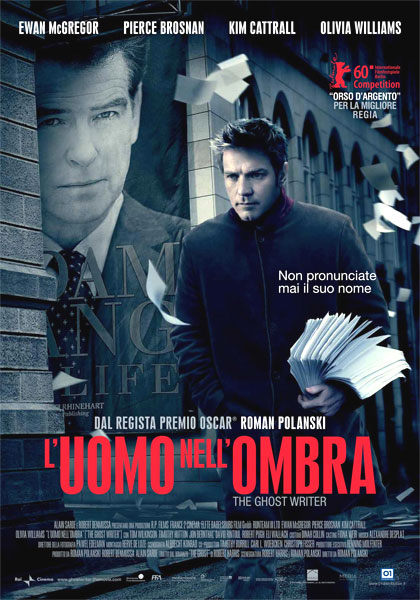 L’uomo nell’ombra è il (brutto) titolo italiano dell’ultimo film di Roman Polanski, The Ghost Writer in originale, tratto dall’omonimo romanzo di Richard Harris, autore della sceneggiatura insieme al regista, frutto delle sue memorie come “scrittore fantasma” di Tony Blair, all’epoca in cui rivestiva la carica di primo ministro britannico. Il termine citato, da noi si usa dire “negro”, indica quegli scrittori che lavorano per conto terzi, personaggi politici, uomini di spettacolo, scrivendone “vita, morte e miracoli”, omettendo o edulcorando i particolari più imbarazzanti, dando linfa vitale a quelli più edificanti.