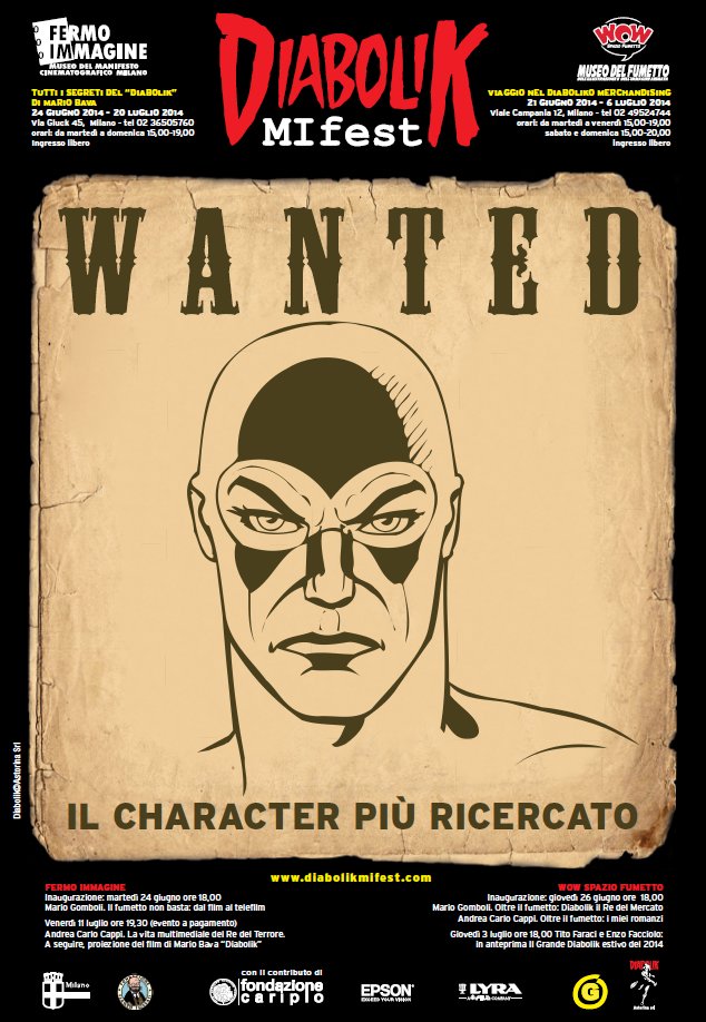 Diabolik, l’uomo dai mille volti, la sensuale e bellissima Eva Kant, sua complice e compagna di sempre (dal n.3, L’arresto di Diabolik, 1 marzo 1963), il “dannato ispettore” Ginko saranno al centro del Diabolik MIfest, un vero e proprio festival che nell’arco di un mese (21 giugno – 20 luglio) dedicherà a tutti gli appassionati due mostre ed una serie di incontri e proiezioni cinematografiche, presso i musei WOW Spazio Fumetto – Museo del Fumetto di Milano (Viale Campania 12) e Fermo Immagine – Museo del Manifesto Cinematografico di Milano (Via Gluck 45).