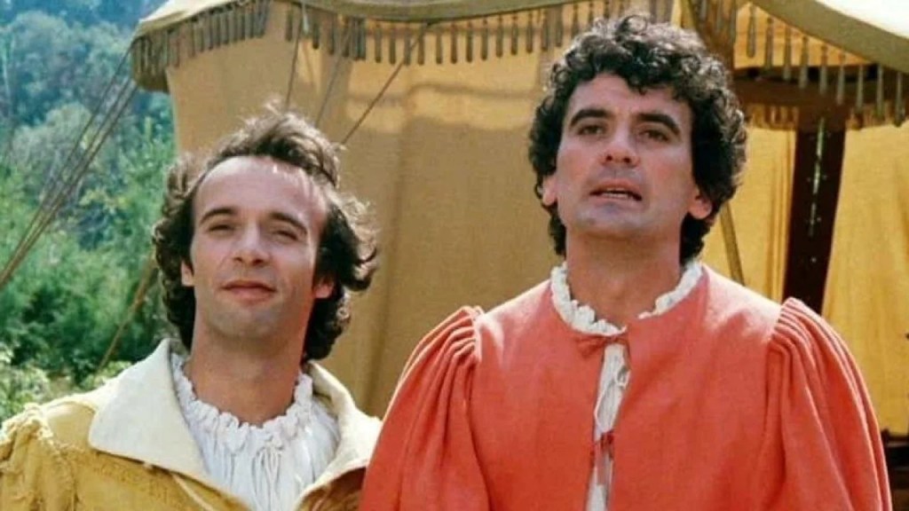 Tornerà nelle sale dal 2 al 4 marzo in versione restaurata e rimasterizzata, grazie all’apporto di Mediaset, Melampo, Film&Video e Lucky Red, Non ci resta che piangere, vero e proprio film di culto nell’ambito della cinematografia di casa nostra, almeno ad avviso di chi scrive, una di quelle pellicole capaci di sfidare il tempo, mantenendo salda l’invidiabile capacità di permearsi nell’immaginario collettivo, fra battute e situazioni difficili da dimenticare, con le prime ormai entrate a far parte del lessico comune, spesso in guisa di ironico contrappunto.