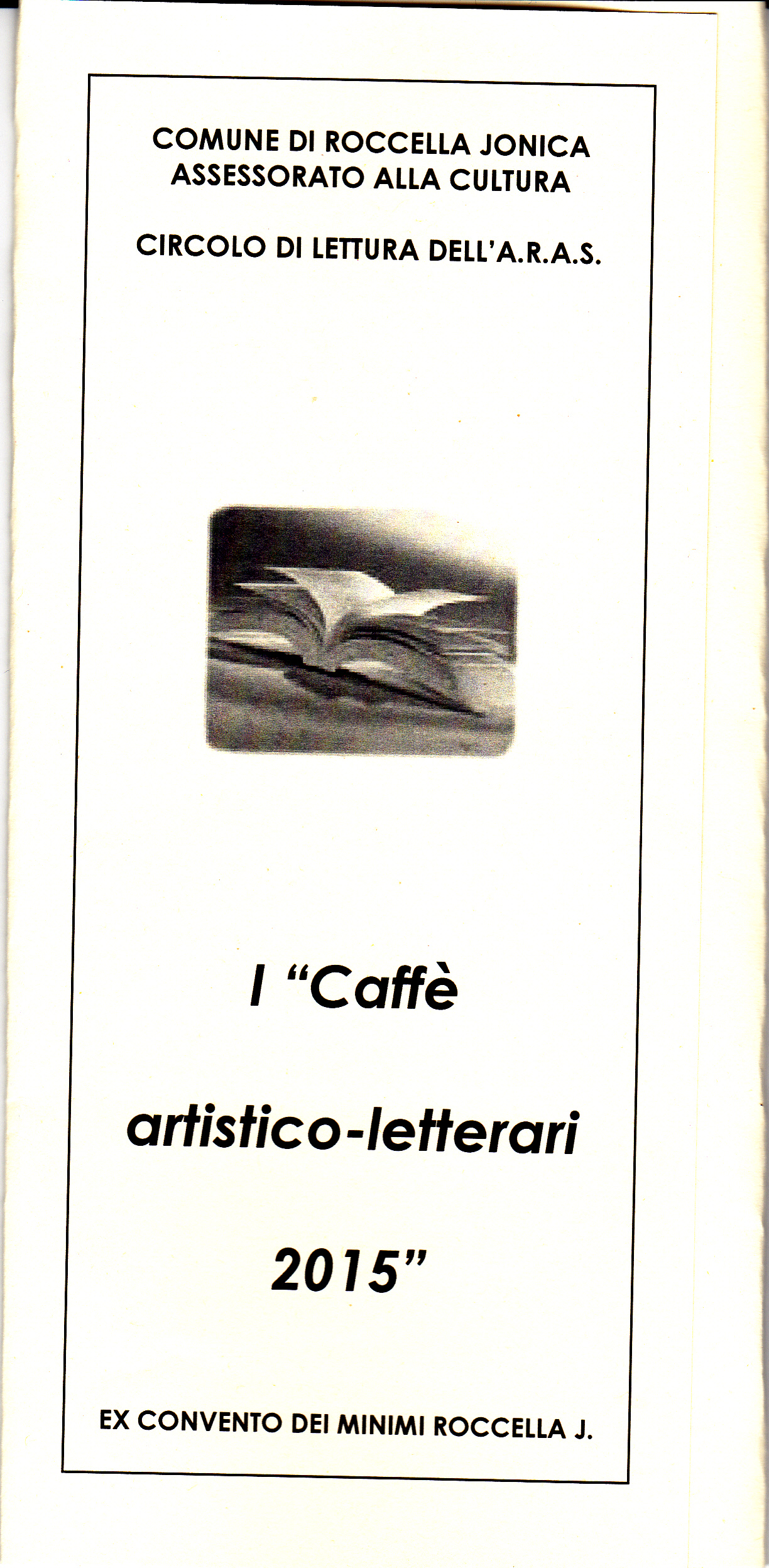 Sabato 11 luglio, alle ore 19, presso l’ex Convento dei Minimi di Roccella Jonica (RC) avrà luogo il primo appuntamento della rassegna I Caffè Artistico-Letterari 2015, organizzata dal Circolo di Lettura dell’A.R.A.S. e dal Comune di Roccella Jonica- Assessorato alla Cultura, con la presentazione del romanzo Uomini e donne oltre la siepe di Caterina Condoluci. I Caffè Artistico-Letterari si delinea, anche quest’anno, come una kermesse particolarmente suggestiva, nel suo coinvolgimento multiculturale volto ad abbracciare, leggendo qua e là all’interno del ricco programma, l’attualità più stringente (L’emigrazione vista da vicino, racconto-intervista di Vito Pirruccio, sabato 25 luglio), Musica (Il concerto della pianista Beatrice Zoccali, su pezzi di Francesco Cilea, sabato 18 luglio), Storia (La Calabria bizantina- Percorsi di arte e spiritualità tra Stilo e Gerace, su relazione del Prof. Francesco Cuteri, sabato 1 agosto), Fotografia (la presentazione del fotolibro Anime Salve, di Elio Carrozza e Luca Daniele, giovedì 6 agosto), Pittura (Raffaele Ursini, pittore di casa e di storia, sabato 8 agosto), Cinema (la rassegna cinematografica Il fascino della diva, la determinazione della donna- Tre film per ricordare Ingrid Bergman a 100 anni dalla nascita, a cura di Antonio Falcone, critico cinematografico, martedì 11, giovedì 13 e domenica 16 agosto).