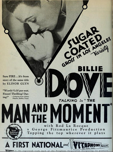Fra le quali è senz’altro possibile ascrivere questo The Man ad the Moment, tratto dall’omonimo romanzo della popolare scrittrice britannica Elinor Glyn, che contribuì a creare, grazie alle sceneggiature tratte dalle sue opere, anticipatrici della letteratura rosa con risvolti sessuali, i miti di Valentino, Gloria Swanson e Clara Bow, attrice quest’ultima per cui la stessa Glyn coniò la definizione di “it girl”, la ragazza dotata di “quel certo non so che” capace di affascinare e conquistare.