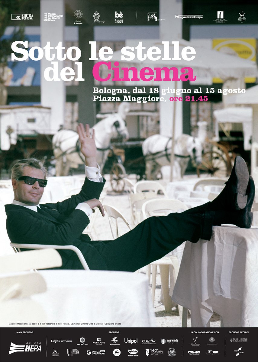 Sotto le stelle del cinema, manifestazione ideata e realizzata dalla Cineteca di Bologna, nell’ambito di bè bolognaestate, il cartellone estivo promosso e coordinato dal Comune di Bologna, è resa possibile anche quest’anno grazie ai contributi istituzionali (Ministero per i Beni e le Attività Culturali – Direzione Generale per il Cinema, Regione Emilia-Romagna – Assessorato alla Cultura), da quelli della Fondazione Carisbo e della Fondazione del Monte di Bologna e Ravenna, di Gruppo Hera
