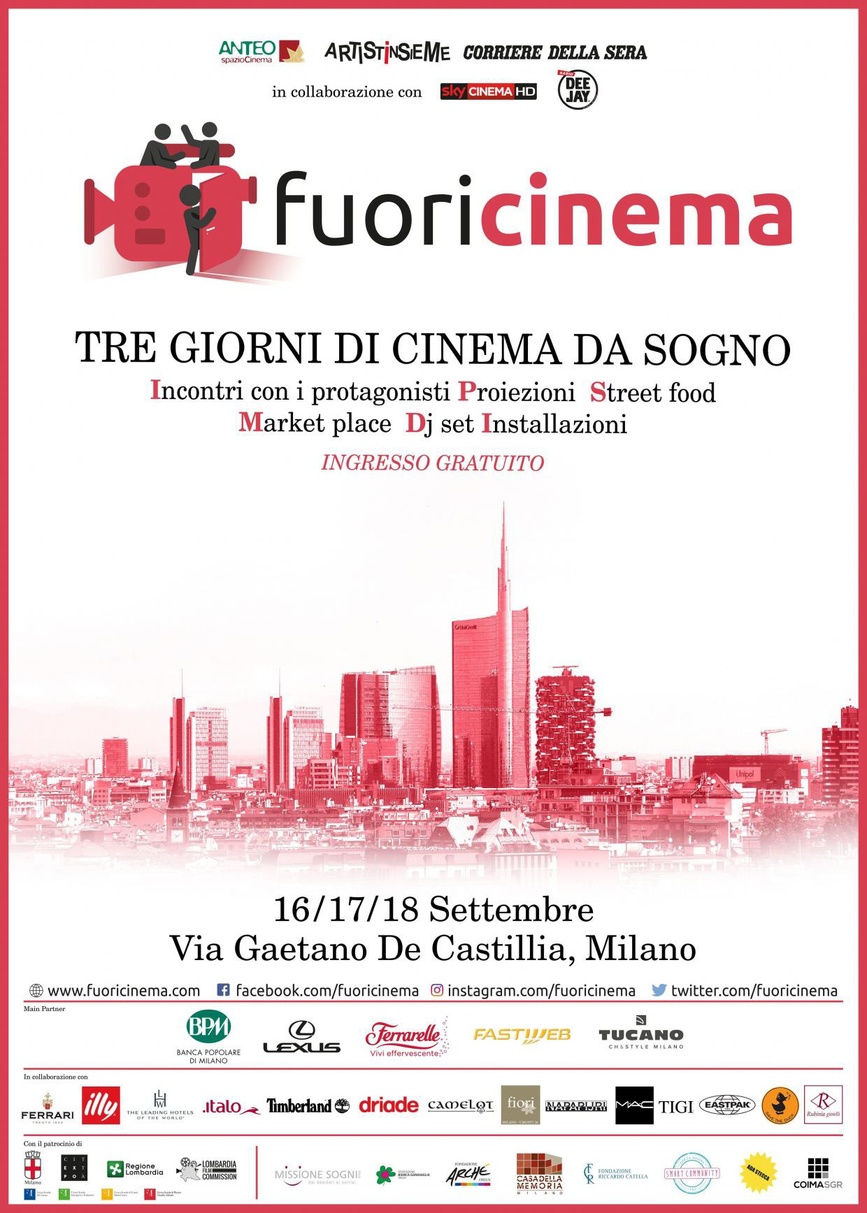 Fuoricinema nasce quindi con la fortissima volontà di creare un evento tanto inclusivo, quanto di condivisione, fortemente contestualizzato a Milano: attraverso la collaborazione con il mondo della moda, così come del cibo e del design, la manifestazione (totalmente gratuita per il pubblico, prodotta da un’Associazione non profit) si occuperà di raccogliere fondi per tre associazioni milanesi che si occupano di infanzia. L’evento è realizzato in collaborazione con Sky Cinema e Radio Deejay, con la partecipazione de Il Corriere della Sera. Un palco e uno schermo, un’arena da un migliaio di posti seduti e altrettanti sul prato, tutt’attorno un piccolo villaggio con street food, un market place, aree di sosta. La manifestazione si svilupperà come un grande happening all’aperto, in modo da raccogliere esperienze di vita, aspirazioni e riflessioni sviluppate attorno al mondo del cinema, metterle in circolo e renderle patrimonio comune.