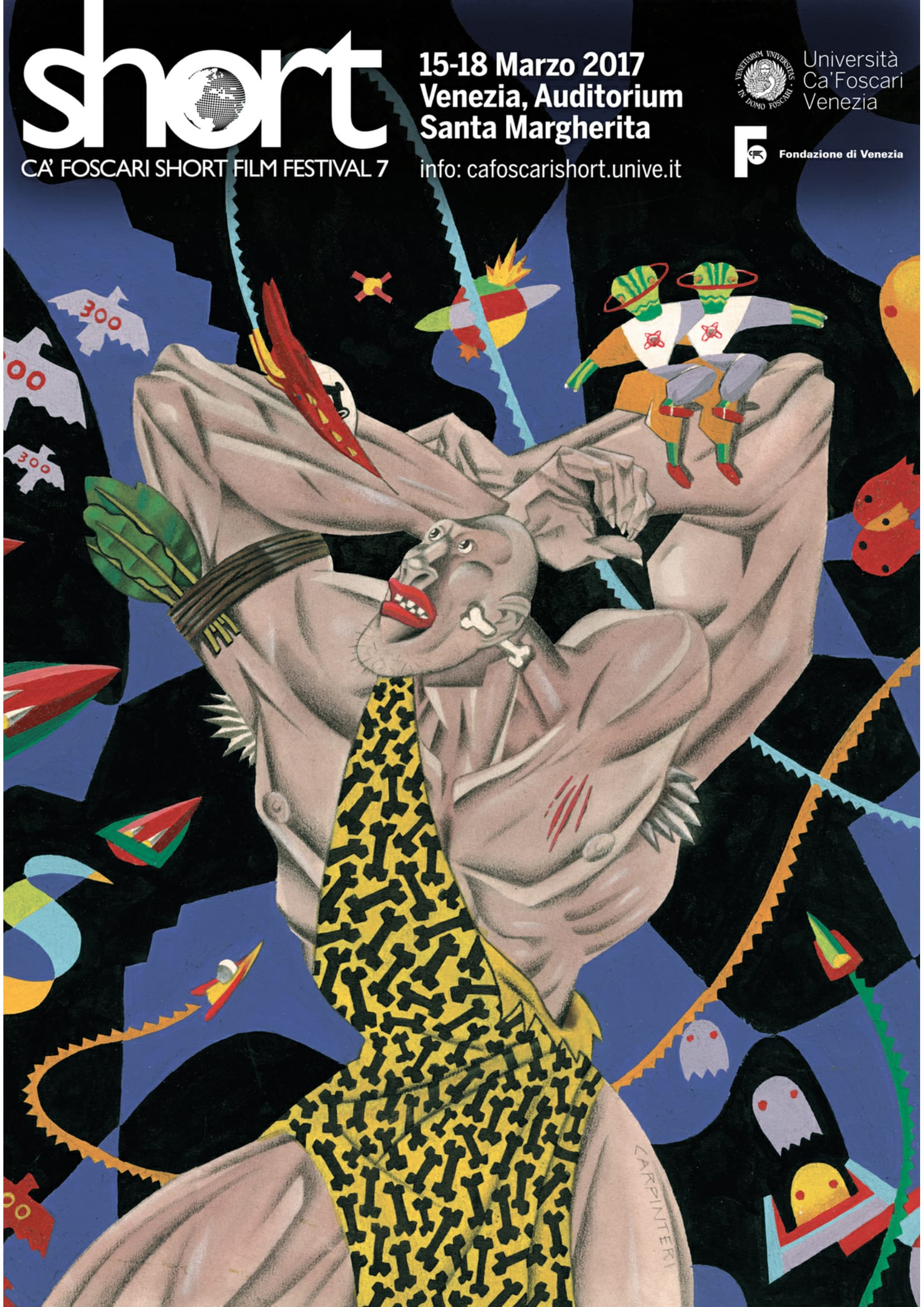Dal 15 al 18 marzo all’Auditorium Santa Margherita di Venezia si svolgerà la settima edizione del Ca’ Foscari Short Film Festival. Forte del successo crescente degli ultimi anni, la kermesse si presenterà al pubblico con numerose conferme e altrettante novità, a partire dal manifesto, per la prima volta a opera dell’artista Giorgio Carpinteri, che sarà presente al festival per incontrare il pubblico. Un’immagine visionaria, una sorta di san Sebastiano del paleolitico, verso cui convergono differenti forze della contemporaneità, certo ideale per rappresentare le dinamiche multiculturali dello Short Film Festival, realizzato con la collaborazione della Fondazione di Venezia, dedicato al cortometraggio e il primo in Europa interamente concepito, organizzato e gestito da un’università (Ca’ Foscari di Venezia).