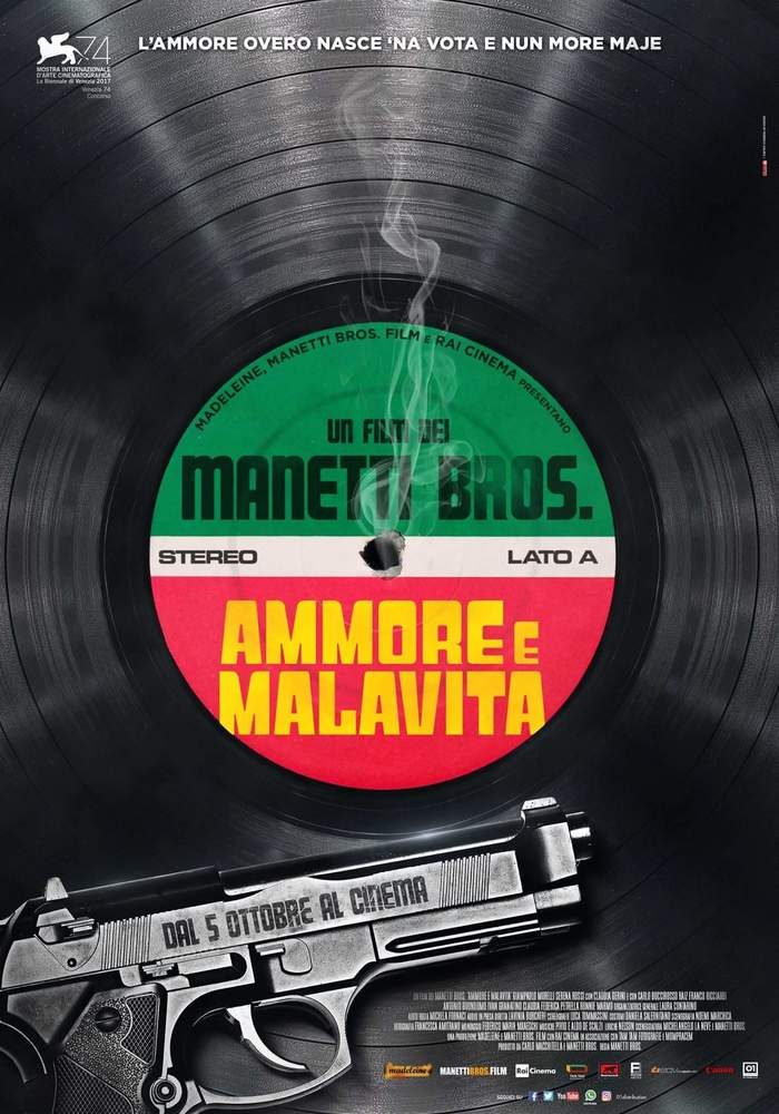Presentato, in Concorso, alla 74ma Mostra Internazionale d’Arte Cinematografica di Venezia, dove ha conseguito alcuni Premi collaterali*, Ammore e malavita, scritto (insieme a Michelangelo La Neve) e diretto dai Manetti Bros., è un’opera scanzonata e trasgressiva, ironica ed irriverente, che dimostra ancora una volta la capacità dei suoi autori di smarcarsi con intelligenza dai soliti canoni della commedia standardizzata, accomodante e senza colpo ferire, ricorrendo sagacemente al genere e ai suoi canoni basilari. Questi ultimi vengono reinterpretati in un’ottica del tutto personale, molto pop, sapientemente sopra le righe, ponendoli al servizio dell’iter narrativo e servendosene in tal caso anche come opportuno grimaldello per scardinare determinati luoghi comuni, certo presenti ma messi sagacemente alla berlina.