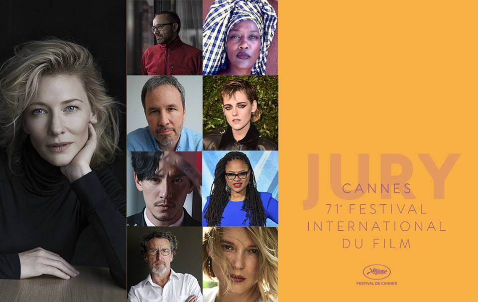 Ecco i nominativi dei giurati che andranno ad affiancare Cate Blanchett al 71mo Festival di Cannes, ai quali toccherà il compito di attribuire la Palma d’Oro e gli altri premi, nel corso della cerimonia di chiusura il 19 maggio: Chang Chen (attrice, Cina), Ava DuVernay (sceneggiatrice, regista e produttrice, Stati Uniti), Robert Guédiguian (regista, sceneggiatore, produttore, Francia), Khadja Nin (musicista, cantante, Burundi), Léa Seydoux (attrice, Francia), Kristen Stewart (attrice, Stati Uniti), Denis Villeneuve (regista, sceneggiatore, Canada), Andrey Zvyagintsev (regista, sceneggiatore, Russia).
