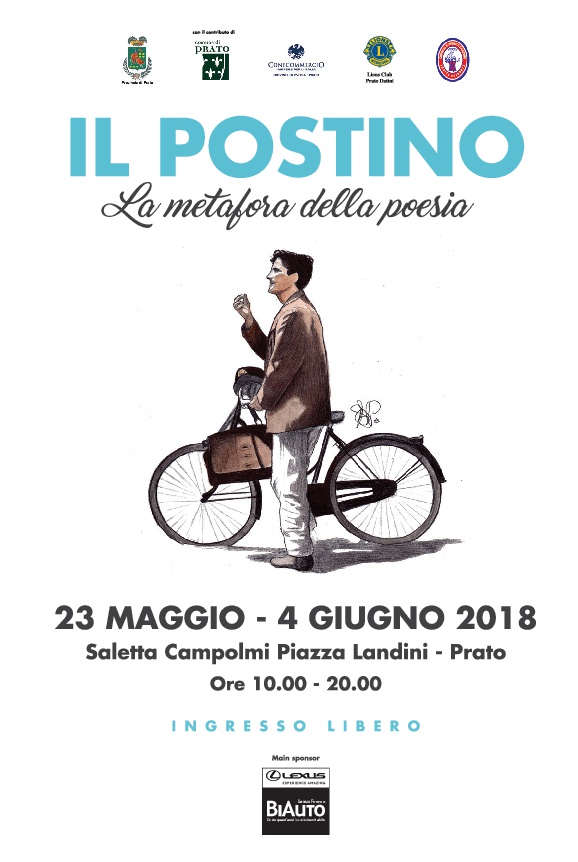 E’ stata inaugurata ieri, mercoledì 23 maggio, a Prato, nel corso della giornata conclusiva del Prato Film Festival (VI Edizione), nella Saletta Campolmi,  la mostra Il postino-Le metafore della poesia, dedicata al film del 1994 diretto da Michael Radford ed interpretato da Massimo Troisi con Maria Grazia Cucinotta, Philippe Noiret, Renato Scarpa ed Anna Bonaiuto. Saranno esposti, fino al 4 giugno, i bozzetti e gli schizzi con cui venivano immaginate le scene ed i costumi dallo scenografo Lorenzo Baraldi e dalla costumista Gianna Gissi, che hanno curato la suddetta esposizione, oltre alla bicicletta concessa dai fratelli Conti, e la borsa utilizzata da Troisi durante le riprese. In mostra anche le foto da set del film realizzate da Angelo Frontoni e tratte dalla collezione digitale Angelo Frontoni, il fotografo delle dive del portale internetculturale.it del Mibact; l’intero archivio di Angelo Frontoni è conservato presso la Fototeca del Museo nazionale del Cinema di Torino e Centro sperimentale di cinematografia-Cineteca nazionale di Roma. L’ingresso alla mostra (ore 10-20) è gratuito.