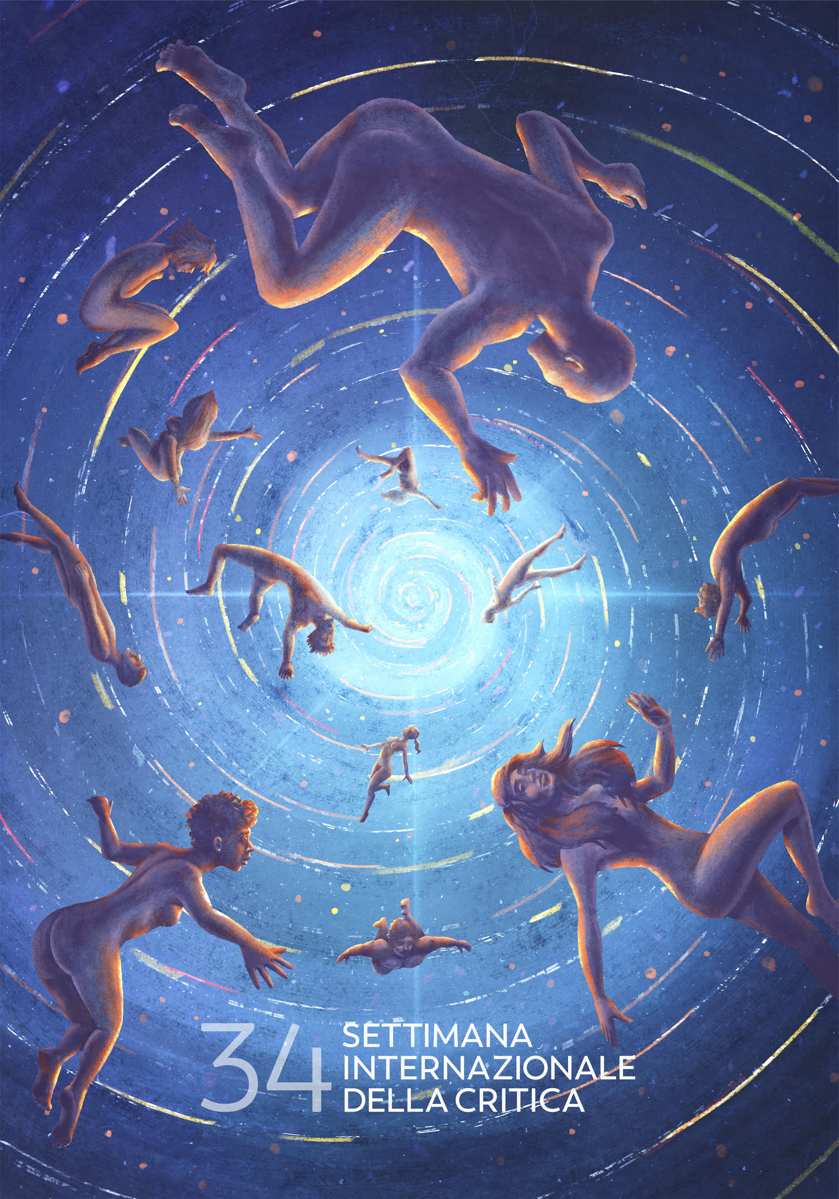 “Poiché viviamo in un mondo che è sempre più diviso dalla politica, l’arte rimane uno dei pochi mezzi in grado di unire le persone indipendentemente dalla loro origine. La Settimana della Critica di Venezia è sempre stata una sezione che mette in luce i registi del futuro con un’enfasi sulla diversità. Volevo trasmettere con questa immagine quella sensazione di creazione senza vincoli di etichette, genere o nazionalità. Questi corpi galleggianti si dirigono verso una luce splendente, abbracciando un futuro più luminoso in cui tutte le barriere sono crollate.” Christelle Halal, autore della locandina uffciale della 34ma SIC.