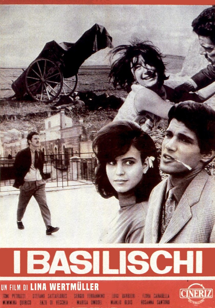 Una volta conseguito il diploma all’ Accademia Teatrale Pietro Scharoff di Roma, la Wertmüller iniziò a lavorare nella compagnia L’Opera dei Burattini di Maria Signorelli ed in teatro, per poi adoperarsi in varie regie radiofoniche e televisive. Il debutto sul grande schermo risale al 1963, come assistente alla regia di Federico Fellini per 8 ½, nello stesso anno scrisse e diresse il suo primo film, I basilischi, il cui iter narrativo, nell’alternanza di ironia e poetico disincanto, tratteggia l’acuto ritratto dell’immobilismo proprio di un emblematico paese del Meridione, evidenziando l’acquiescenza da parte delle nuove generazioni di quanto ereditato da coloro che sono venuti prima, assecondando, tra fatalismo e pigrizia, un tacito rebus sic stantibus all’insegna di quella amara constatazione espressa dalla voce narrante sul finale, che cita Giustino Fortunato: “Noi siamo quelli che la razza, il clima, il luogo, la storia, hanno voluto che fossimo …”