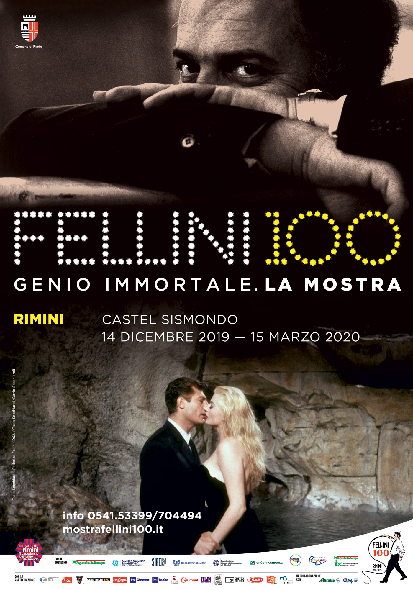 Un compleanno unico, nei luoghi che videro Fellini nascere, poi crescere, accumulando ricordi e sogni atti a trasmutarsi in linfa poetica per i suoi capolavori, conosciuti in tutto il mondo, quinta d’eccezione di questi lunghi festeggiamenti, fra luci che lo omaggiano in forma di parole illuminate e immagini tratte dai suoi film, così come le frasi dalle sceneggiature che accompagnano i visitatori in un cammino tra i vari luoghi che ospitano il programma delle celebrazioni: Piazza Cavour, Teatro Galli, Castel Sismondo, Corso d’Augusto, Cinema Fulgor.