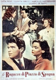 Sceneggiato da Sergio Amidei, con la collaborazione di Fausto Tozzi e Karin Valde, per la regia di Luciano Emmer, Le ragazze di Piazza di Spagna nella sua cornice di racconto leggero e “sanamente” popolare, ulteriormente circoscritto da un profuso sentimentalismo, delinea con acume un attento ritratto di costume dell’Italia d’inizio anni ’50, concentrandosi in particolare sui personaggi femminili e la loro psicologia. Un paese, rappresentato dalla varia umanità brulicante fra le mura delle Capitale, visualizzato nelle sue vivide contraddizioni, sospeso fra antichi retaggi e propensione a qualcosa di nuovo, conservando comunque determinati valori morali.