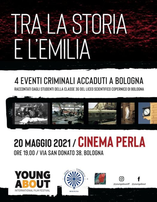 Giovedì 20 maggio, alle ore 19.00, al Cinema Perla di Bologna (Via san Donato 38) avrà luogo la proiezione del cortometraggio Tra la storia e l’Emilia, un film realizzato dai ragazzi e dalle ragazze della 3G del Liceo Copernico con la regia di Vito Palmieri e la collaborazione della docente Donatella Vitale.
