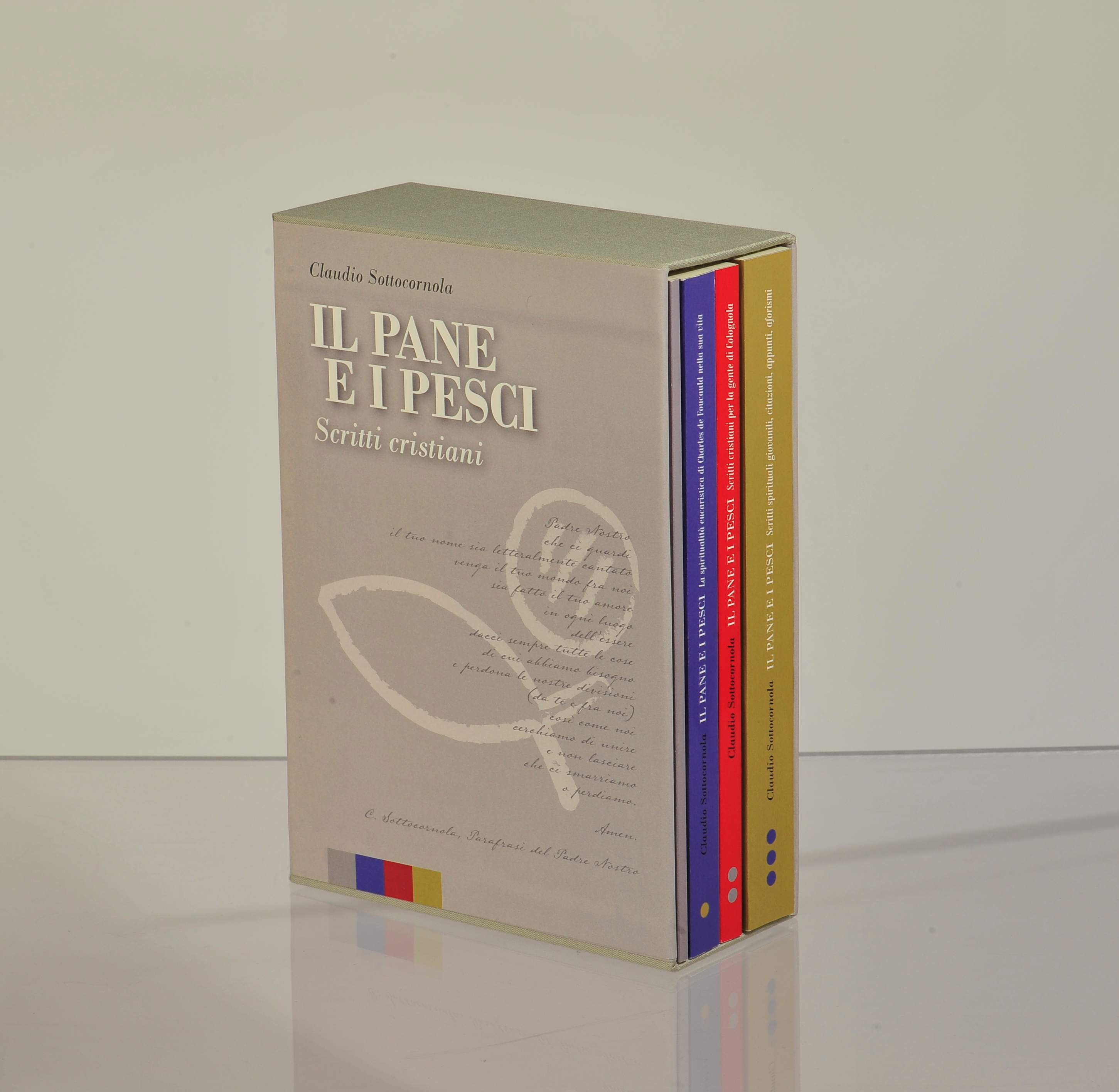 Da segnalare infine una vera e propria chicca, il cofanetto giovanile Il pane e i pesci, quasi mille pagine fra giornalismo, spiritualità e diario esistenziale realizzate tra il 1980 e il 2010, quattro volumi che nell’edizione ebook vengono proposti insieme, incentrati su esperienza e crisi del sacro fra territorio, volontariato e riflessione teologica, con focus sugli anni ’80 e ’90 del Novecento: l’autore vi focalizza il punto estremo di una ricerca sempre in divenire, volta a recuperare memoria e senso della spiritualità, al di là dell’ormai stanca dicotomia dell’essere o non essere credenti, spingendoci piuttosto ad interrogarci sulla natura delle nostre motivazioni profonde, se queste abbiano caratteristiche tali da permetterci di superare il più gretto individualismo. Dal cofanetto è stato estratto inoltre in edizione ebook autonoma La spiritualità eucaristica di Charles de Foucauld nella sua vita, che fu la tesi di laurea in Storia della teologia dell’autore, e che torna ora di grande attualità, a seguito dell’annuncio della canonizzazione del fratello universale annunciata da Papa Bergoglio, il 3 maggio di quest’anno, rimarcandone l’austerità di vita nella imitatio Christi, la profonda esperienza di preghiera e adorazione sullo sfondo del paesaggio sahariano e, nel contempo, il continuo contatto con la gente, militari francesi, tuareg, ultimi, nel cercare di comprendere altre religioni e culture senza proselitismi o forzature.