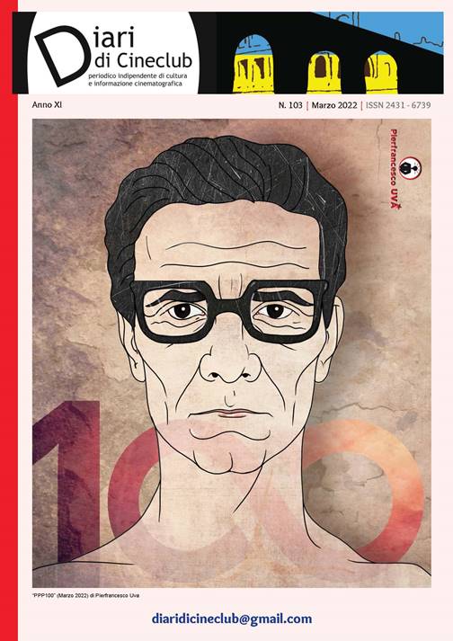 E’ disponibile online, scaricabile gratuitamente, il N. 103-Marzo 2022 di Diari di Cineclub, periodico indipendente di cultura ed informazione cinematografica. In questo numero: Riflessioni sullo stato dell’arte cinematografica, in Italia, con proposte (Paolo Minuto); Poetiche: L’hai amata, vero? (Charles Bukowski); Pasolini 100 – alfabeto pasoliniano (Roberto Baldassarre); Claretta Carotenuto: Mio padre, interprete multiforme! (Ignazio Gori); Ricordo di Massimo Cialani (Luca Romanini); Le nozze di Shirin di Helma Sanders-Brahms (Massimo Cialani); PPP100 | 2022 | (DdC). Lo spazio espositivo web di Diari di Cineclub (DdC); Browning Circus! (Patrizia Salvatori); Scrittori e cinema. Vitaliano Brancati e il mondo dello spettacolo (Fabio Massimo Penna); Virtual Revolution: sembra cyberpunk ma diventa cronaca vera (Giacomo Napoli); After Love (2021) Aleem Khan – un esordio promettente dall’altra parte della Manica (Tonino Mannella); Corpi liberi (2021) di Fabiomassimo Lozzi (Gigi Cabras); 1902: Avanti il divorzio. Al cinema con Anna Franchi (Lucia Bruni); Essere altri nel mondo virtuale (Àngel Quintana); Il dialogo con l’assenza in Stringimi forte, di Mathieu Amalric (Tonino De Pace); Il rapimento di Moro fu nel tempo di marzo (Natalino Piras); La Giornata della Memoria al Gremio dei Sardi di Roma, con Edith Bruck (Luisa Saba); Michelina, Madre ciociara: una biografia per immagini (Maria Carla Cassarini); Arsenico e vecchi merletti (Arsenic and Old Lace, 1944). Antonio Falcone; Quei fantastici anni Ottanta (Terza parte). Demetrio Nunnari; Dalla cronaca ai balloon: il manga realistico tra prigionia e politica (Ali Raffaele Matar); Dove sono le donne del fumetto? (A.R.M.); La geografia del cinema: l’Olanda (Leonardo Dini); Sentieri di cinema: percorsi nei linguaggi della comunicazione lavorando con i giovani (Alberto Piastrellini); Ala Bianca, Artigiano della Musica (Toni Verona); Un eroe nell’Iran di Asghar Farhadi (Alessio Cossu).