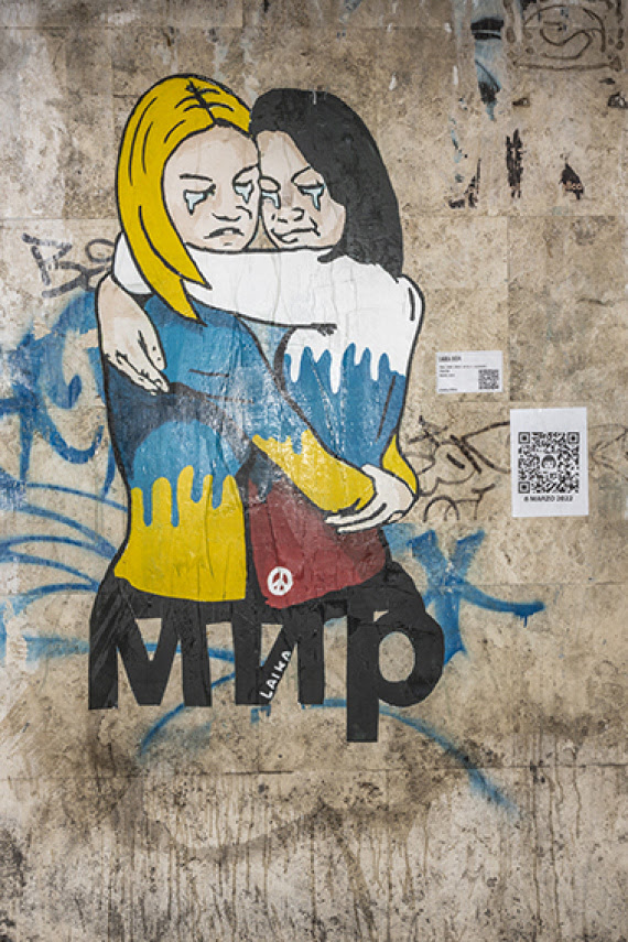 Nella notte tra il 7 e l’8 marzo, la street artist Laika ha affisso a Piazzale Ostiense (nei pressi della Metro Piramide di Roma) la sua nuova opera dedicata alle donne ucraine e russe.
