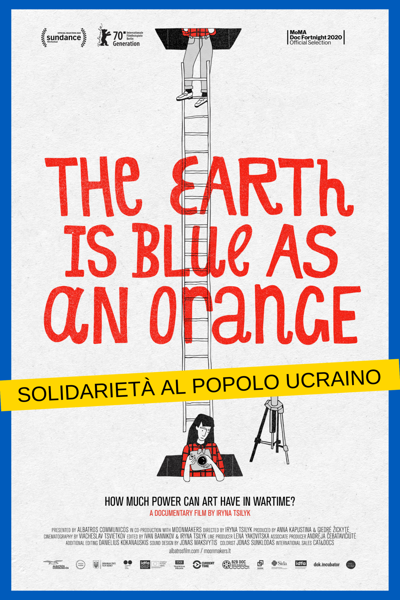 Ambasciata della Repubblica di Lituania in Italia, Ambasciata della Repubblica di Ucraina in Italia, Istituto della Cultura Lituana, Cineteca Milano e Z-Power-Young People Back to the Movies, insieme a numerose sale in tutta Italia, programmeranno il film della regista e scrittrice ucraina Iryna Tsilyk, The Earth Is Blue as an Orange, pluripremiato documentario girato nel Donbass che offre l’opportunità di conoscere meglio il Paese e la cultura ucraina attraverso la vita quotidiana di una famiglia appassionata di cinema e affamata di vita nonostante le bombe.