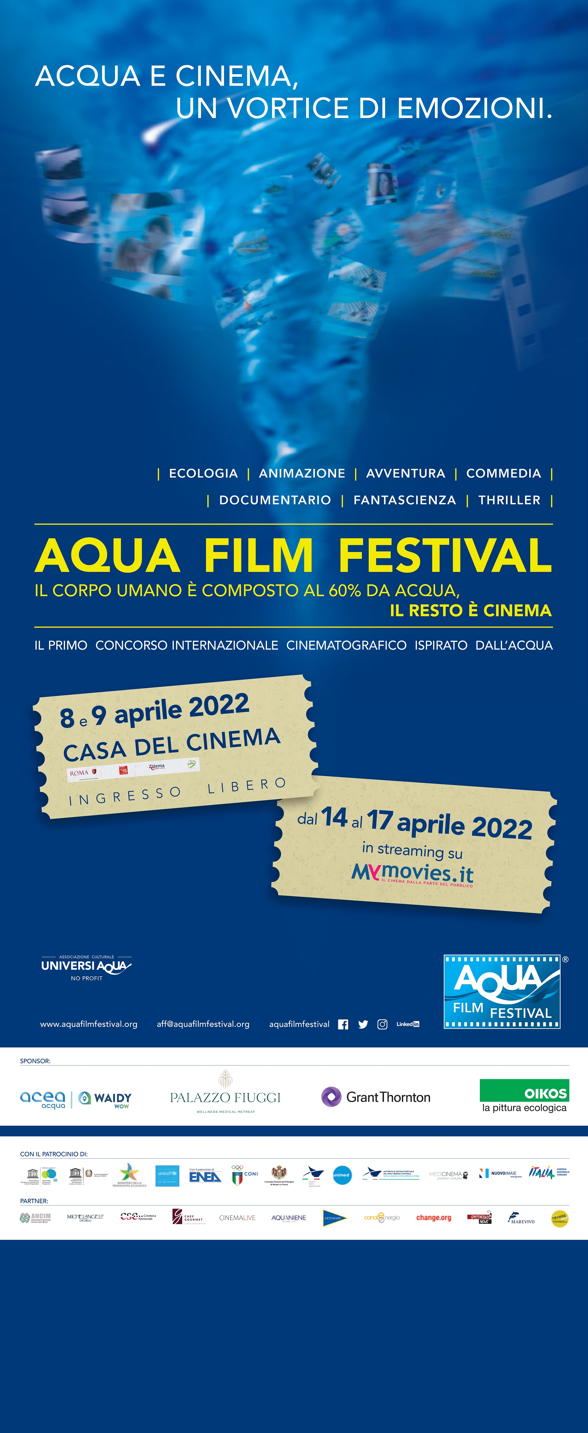 Prende il via oggi, venerdì 8 aprile, in presenza alla Casa del Cinema di Roma fino sabato 9, e in streaming su MyMovies dal 14 al 17 aprile, la sesta edizione dell’Aqua Film Festival, rassegna internazionale per lavori dedicati al tema dell’acqua organizzata dall’Associazione Culturale no profit Universi Aqua.