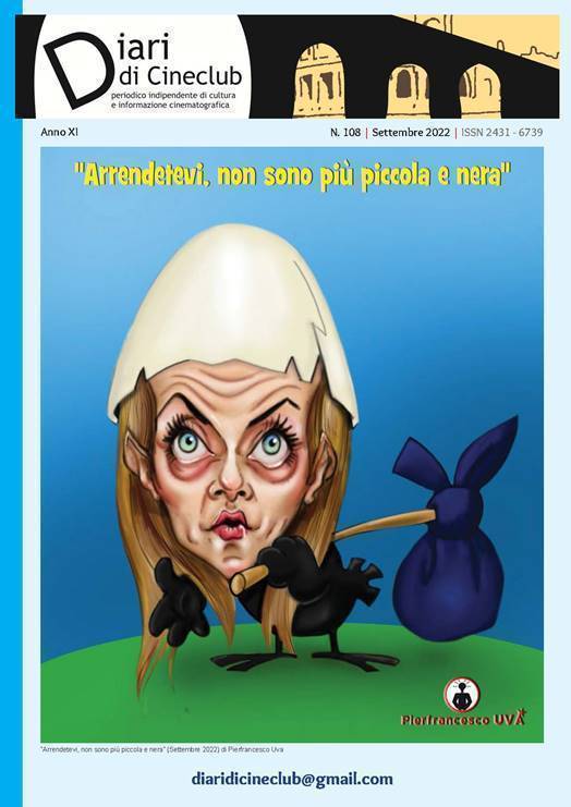 E’ online, disponibile gratuitamente, il numero 108-Settembre 2022 di Diari di Cineclub, periodico indipendente di cultura ed informazione cinematografica. In questo numero: Valeria Bruni Tedeschi: il vortice della vita che avvolge e scombina… (Nuccio Lodato); I film di famiglia, un patrimonio di storia sociale sconosciuto (Tonino De Pace);Terra, pane, libertà: al festival di Bologna il cinema militante degli anni sessanta (Giovanni Verga); Al diavolo i capolavori (Silvestra Sbarbaro); Elvis, il Re e la sua prigione dorata (Àngel Quintana); Scompartimento n. 6 – un viaggio ai confini del mondo (Tonino Mannella); Riace, tutti con Mimmo Lucano (Luisa Morgantini); Agosto sotto il cielo di Riace (DdC); Memoria di Apichatpong Weerasethakul (Claudio F. Cherin); Chi è senza peccato – The Dry (Alessio Cossu); Amleto. Il primo eroe moderno della letteratura (Fabio Massimo Penna); Se l’immortalità spaventa: le sirene dell’orrore di Rumiko (Ali Raffaele Matar); Il Free Cinema e la rabbia dei giovani inglesi. La classe operaia arriva sugli schermi britannici (Pierfranco Bianchetti); Abbiamo ricevuto:· Gomorra. Fenomenologia di un successo seriale (Alberto Castellano); Una claustrocinefilia. Conversazione con Alessandro Aniballi (Gabriele Ragonesi); Cinema Italia. I film che hanno fatto gli italiani (Lucia Bruni); I due mondi di Adolfo Celi. Ricordo del grande attore nel centenario della nascita (Nino Genovese); Liberare le idee – Confronti letterari (Carmen De Stasio).