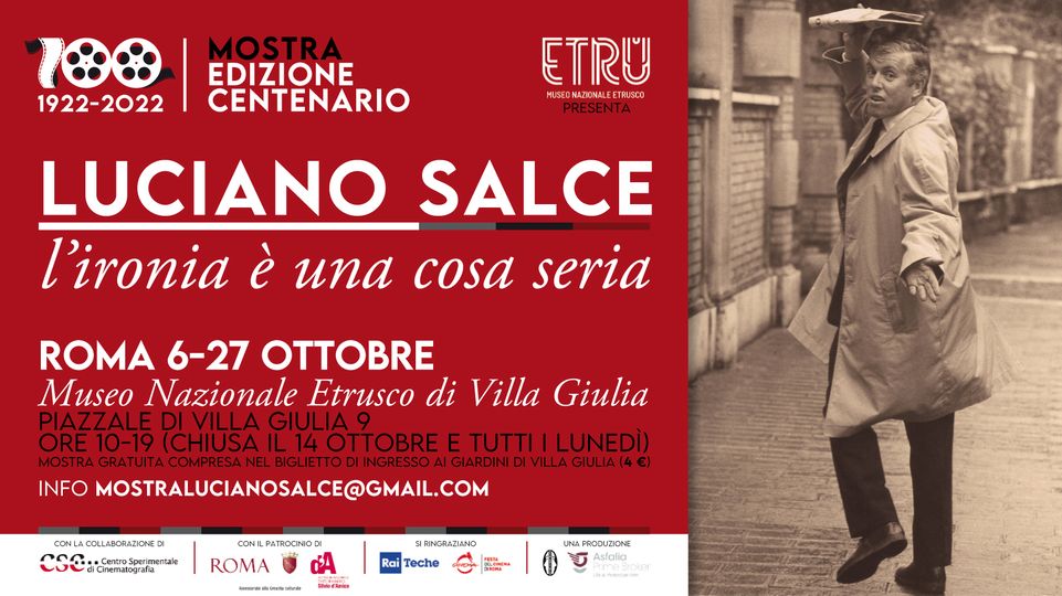 Ho scritto di Luciano Salce, rimarcandone la rilevanza autoriale all’interno del nostro cinema ed illustrandone le caratteristiche principali della sua produzione cinematografica, insieme alla recensione del film Il federale (1961), l’opera che gli diede grande notorietà e successo, qualche anno addietro, in occasione della mostra Luciano Salce – L’ironia è una cosa seria, curata da Emanuele Salce ed Andrea Pergolari con ideazione scenografica di Enrico Serafini, che ebbe luogo a Roma, Palazzo Firenze, dal 25 settembre al 6 ottobre 2019 ed ora in programma, edizione speciale per il centenario della nascita di Salce, ricorrente oggi, domenica 25 settembre, al Museo Nazionale Etrusco di Villa Giulia (Piazzale di Villa Giulia 9, Roma) dal 6 al 27 ottobre (visitabile dalle ore 10 alle ore 19. Chiusa il 14 ottobre e tutti i lunedì).