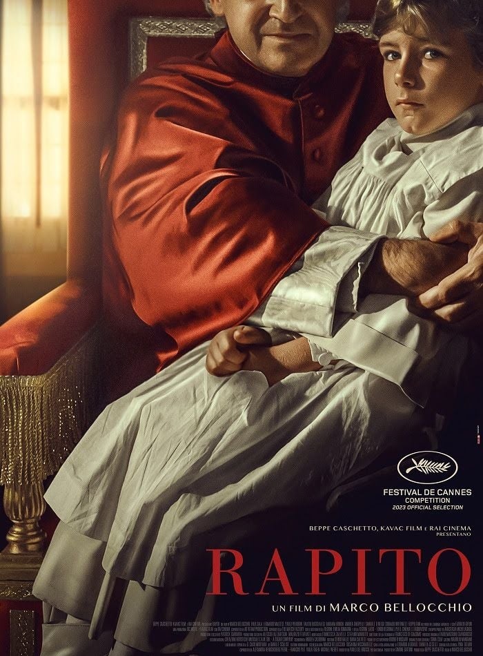 Presentato, in Concorso, al 76mo Festival di Cannes, Rapito, diretto da Marco Bellocchio, anche autore della sceneggiatura insieme a Susanna Nicchiarelli (in collaborazione con Edoardo Albinati e Daniela Ceselli), ha come soggetto di partenza una libera ispirazione al saggio di Daniele Scalise Il caso Mortara: la vera storia del bambino ebreo rapito dal papa (Mondadori, 1997).