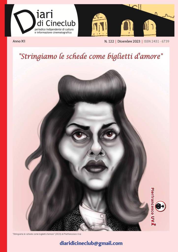 E’ disponibile online, scaricabile gratuitamente, il numero 122 | Dicembre 2023 di Diari di Cineclub, periodico indipendente di cultura e informazione cinematografica. Ecco l’indice del nuovo numero: Questo Natale (Natalino Piras); Killers of flower moon – L’eterno ritorno del cinema di Martin Scorsese (Tonino De Pace); Il personaggio del mese: Martin Scorsese (Barbara Taglioni); La tragedia delle Ande: tra realismo e catastrofismo (Àngel Quintana); Il cinema fantasmatico di Luca Musk (Roberto Chiesi); La Spettatrice Qualunque alla Festa del Cinema di Roma (Spettatrice Qualunque); Gli anni della FICC – Federazione Italiana dei Circoli del Cinema (Marco Asunis); Cinecircoli Giovanili Socioculturali: 56 anni a servizio dei giovani (Cristiano Tanas); Tolja Djokovic vince il Premio Riccione con Lucia camminava sola (Giuseppe Barbanti); Mean Streets. Nella Little Italy, tra inferno e paradiso, tra peccato e redenzione (Lorenzo Pierazzi); Zerocalcare, se coerenza e solidarietà diventano difetti (Ali Raffaele Matar); Lo stato delle cose. Il cinema naturale di Jean-Daniel Pollet (Patrizia Salvatori); Il cinema europeo di Woody Allen (Benedetta Pallavidino); Il Gattopardo: dal romanzo al film che festeggia sessant’anni di vita (Nino Genovese); Un insolito naufrago nell’inquieto mare d’oriente (Roberto Baldassarre); Matti Pellonpää (Virgilio Zanolla); Gli anni Trenta, l’età d’oro del cinema francese (Pierfranco Bianchetti); Orrore Cosmic-pop (Nicola Santagostino); Un vecchio, prezioso libro di Carl Th. Dreyer (Stefano Beccastrini); Alberto Moravia e le donne della sua vita (Maria Rosaria Perilli).