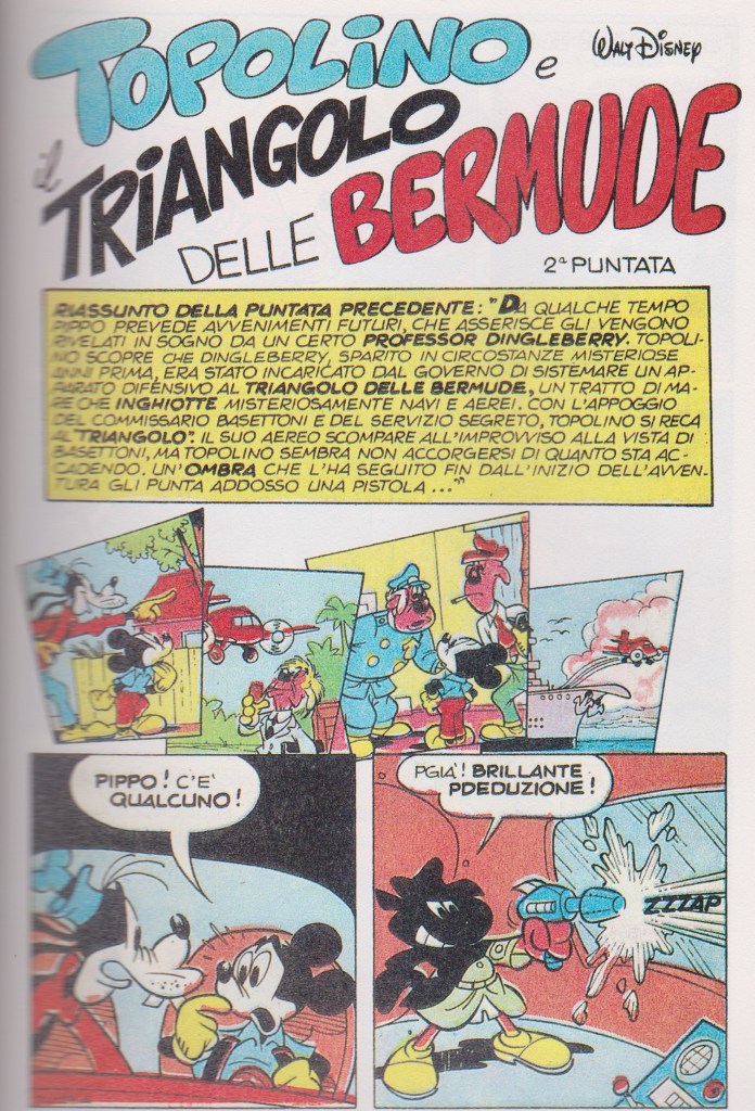 Per una mera casualità Topolino scamperà però all’agguato, ricevendo per il tramite del Commissario, dopo i dovuti chiarimenti, l’incarico del governo d’indagare sulla misteriosa sparizione, avvenuta in quella zona nota come “triangolo delle Bermude”, dove aerei e navi svaniscono improvvisamente all’occhio umano e dagli schermi dei radar.