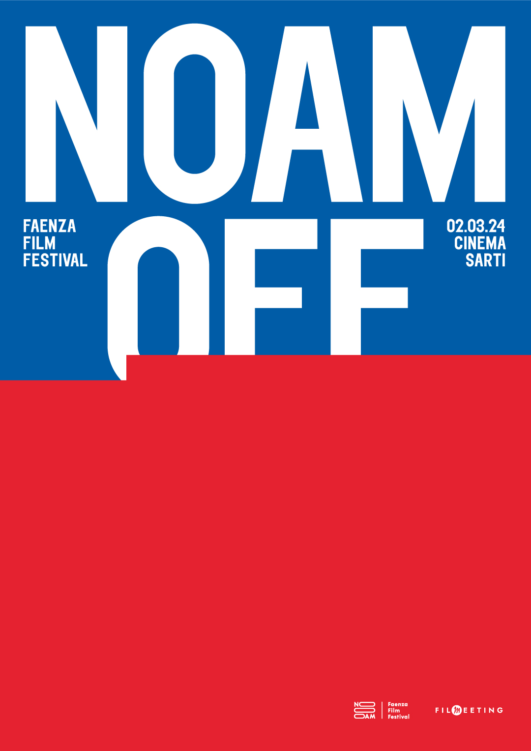 Il Noam Faenza Film Festival è un evento dell’associazione Filmeeting Aps, formata da giovani del territorio, reso possibile grazie al patrocinio della Direzione generale Cinema e audiovisivo del Ministero della Cultura, della Regione Emilia-Romagna e del Comune di Faenza, a cui si aggiunge la collaborazione con il gruppo Cinemaincentro che nella figura di Alberto Beltrani è il principale partner di Noam Off. All’evento contribuiscono poi il Cineclub il Raggio Verde, CNA Cinema e Audiovisivo Ravenna e tante realtà del territorio faentino e forlivese tra cui La BCC, Cinema Europa, FM Market, Sorelle Festival e l’agenzia di comunicazione Menabò.
