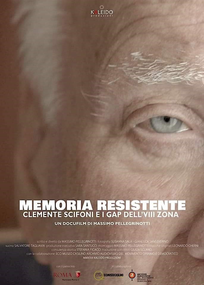 Memoria Resistente. Clemente Scifoni e i Gap dell’VIII Zona. Sceneggiatura e regia: Massimo Pellegrinotti. Fotografia: Susanna Sala – Gianluca Sanseverino. Suono: Salvatore Tagliavia. Produzione esecutiva: Sara Santucci. Montaggio: Massimo Pellegrinotti. Musiche originali: Leonardo Cherni. Consulenza storica: Stefania Ficacci. Traduzione sottotitoli: Giulia Sclano. Con la collaborazione di Eco Museo Casilino e di Archivio Audiovisivo del Movimento Operaio e Democratico. MMXXIII Kaleido Produzioni.