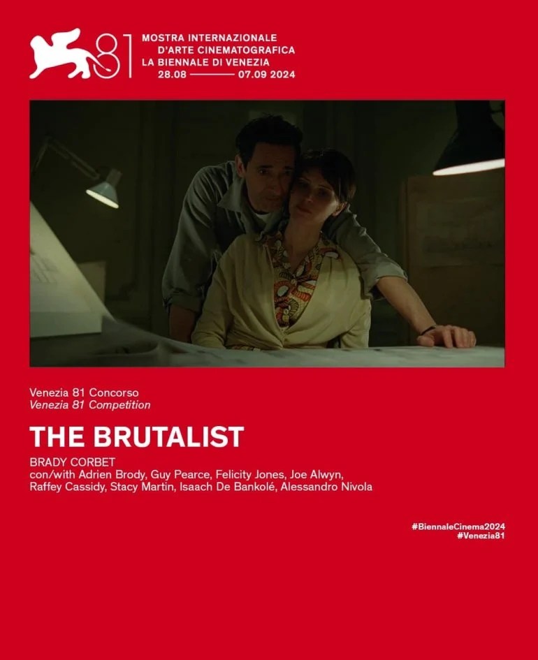 Cineteca Milano e Fondazione EOS – Edison Orizzonte Sociale annunciano che la Giuria composta da cinque giovanissime/i chiamata a esprimersi sui film del Concorso nell’ambito della 81ma Mostra Internazionale d’Arte Cinematografica di Venezia, ha decretato vincitore del Premio Collaterale CinemaSarà 2024 il film The Brutalist di Brady Corbet, con la seguente motivazione: “Per la capacità di realizzare un’opera epica e originale in grado di confondere sapientemente realtà e finzione come il grande cinema insegna, rinsaldando per gli anni a venire il rapporto tra spettatore e sala cinematografica”.