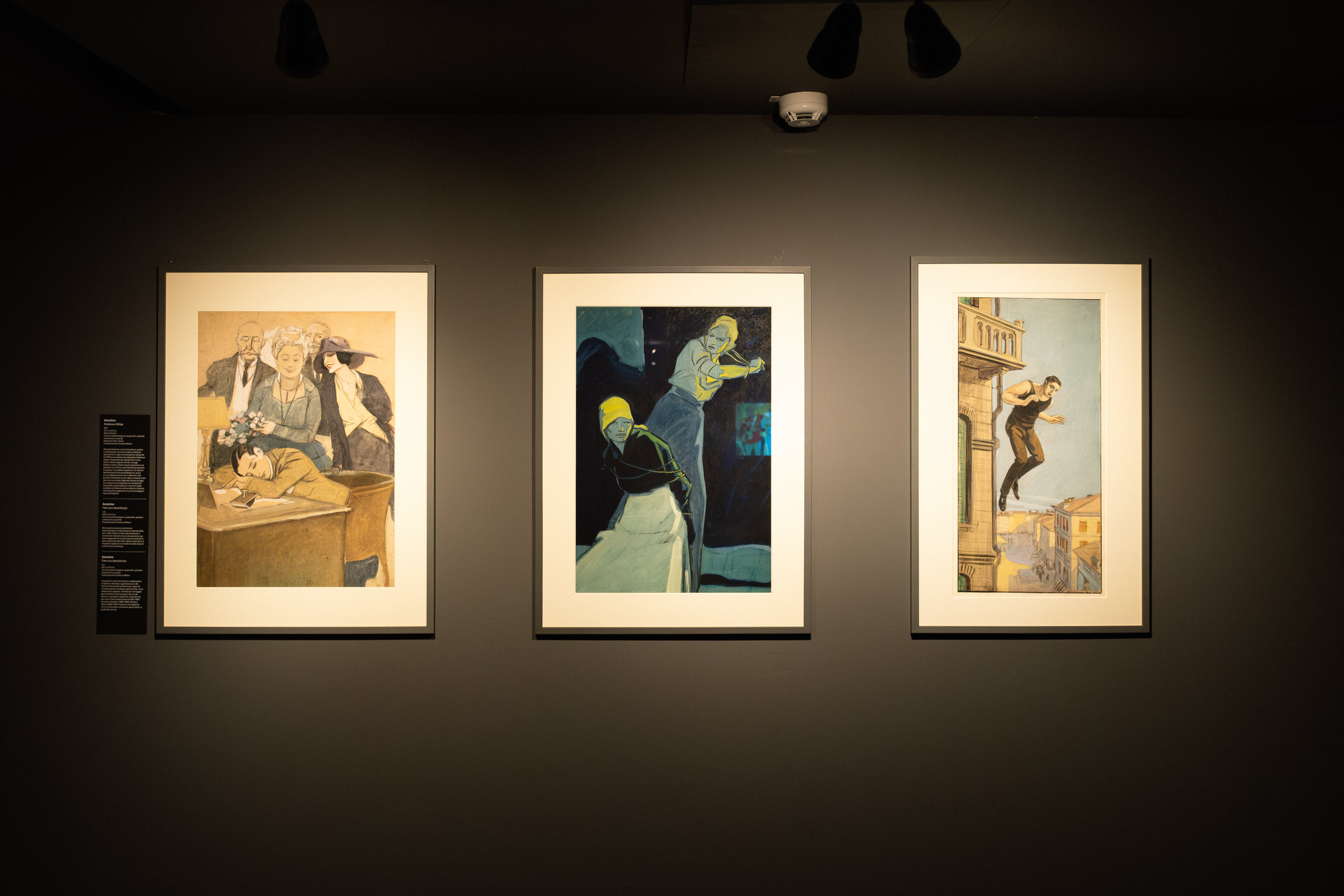 I ventisei bozzetti, tutti provenienti dall’Archivio di Cineteca Milano, sono stati oggetto di un accurato intervento di restauro eseguito in collaborazione con la Scuola di Restauro dell’Accademia di Brera. Gli studenti, in qualità di tirocinanti presso il laboratorio interno della Cineteca, hanno avuto l’opportunità di lavorare sul prezioso nucleo di dipinti su carta. L’intero restauro è stato condotto nell’ottica del minimo intervento, volto a preservare l’immagine pittorica degli esemplari conservandone, tuttavia, le caratteriste originali. L’intervento ha dato modo, inoltre, di studiare attentamente i materiali, sia dal punto di vista tecnico che storico-artistico, consentendo talvolta di stabilire con certezza l’origine e l’autorialità di alcune delle opere, fino ad oggi sconosciute.