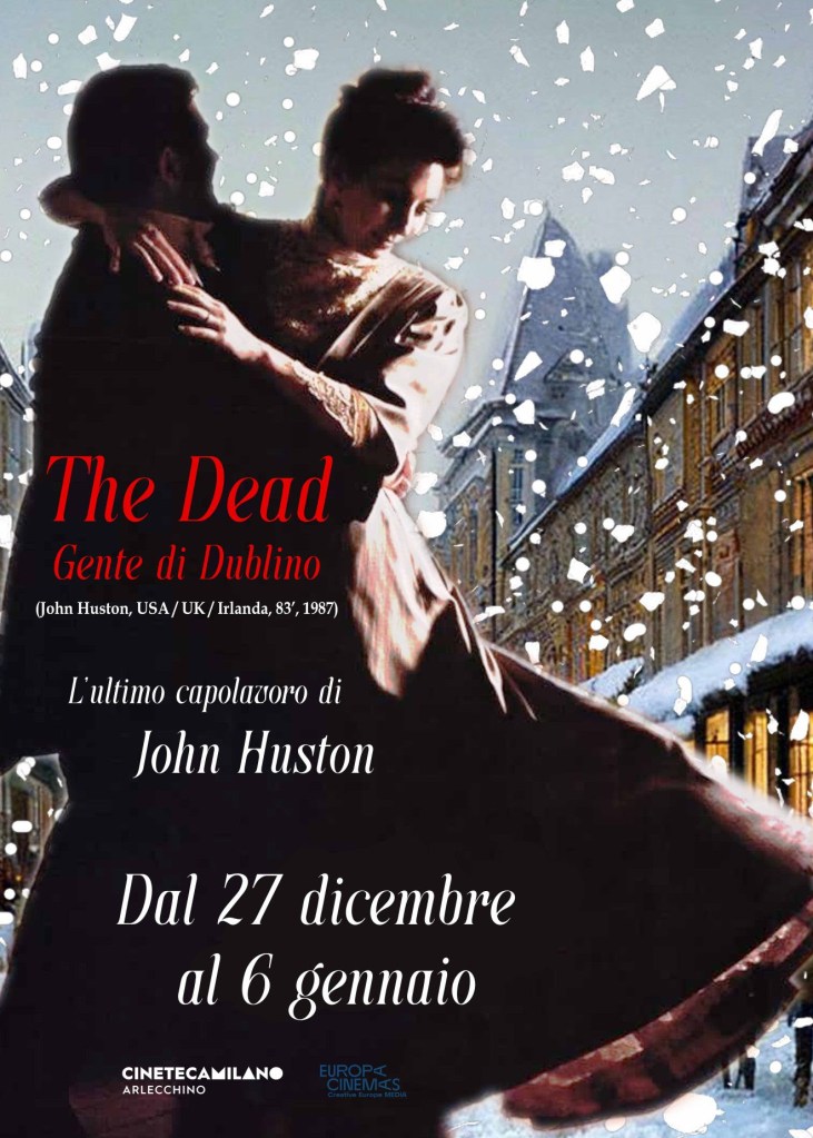 The Dead – Gente di Dublino. Regia: John Huston. Sceneggiatura: Tony Huston, dal racconto omonimo di James Joyce. Interpreti: Angelica Huston, Donald McCann, Helena Carroll, Cathleen Delany. Nazione: UK/Stati Uniti/Irlanda. Anno: 1987. Durata: 83’. Versione in lingua originale sottotitolata in italiano. In proiezione venerdì 27 dicembre, ore 19.00. Domenica 29 dicembre, ore 11.00. Martedì 31 dicembre, ore 17.00. Giovedì 2 gennaio, ore 17.00. Sabato 4 gennaio, ore 15.00.Domenica 5 gennaio, ore 18.00. Lunedì 6 gennaio, ore 13.00.
