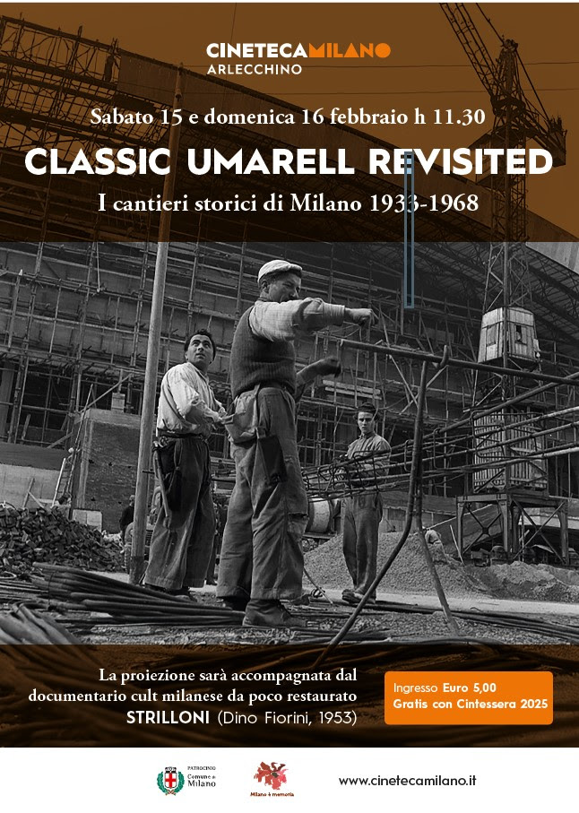 Classic Umarell è anche la fotografia del mondo del lavoro, uno spaccato sulle condizioni di operai, muratori e carpentieri. Dalla visione del documentario emerge soprattutto l’immagine di una città ferita dalla Seconda Guerra Mondiale che riparte di slancio. Classic Umarell è realizzato da Cineteca Milano con il patrocinio del Comune nell’ambito del progetto Milano è Memoria. Abbinata alla proiezione del docufilm ci sarà quella di Strilloni, un documentario (11′) di Dino Fiorini del 1953. Gli strilloni a Milano nei primi anni Cinquanta sembrano scandire il ritmo della capitale ambrosiana, testimoniando, nel contempo, il primato dell’informazione stampata. (Fonte: comunicato stampa)
