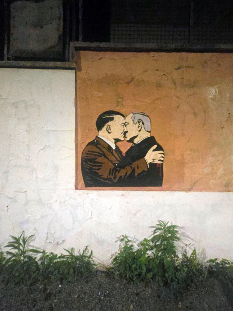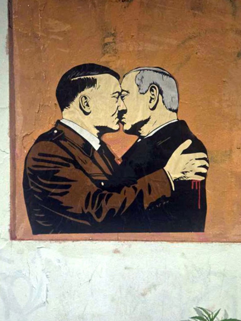 Nella notte tra il 25 e il 26 maggio è apparsa a Roma, davanti al liceo Manara (via Basilio Bricci), una nuova e provocatoria opera di Laika: un poster intitolato La soluzione finale, che ritrae un bacio tra Adolf Hitler e Benjamin Netanyahu. Il dittatore nazista si complimenta idealmente con il premier israeliano per la conduzione della guerra a Gaza. “Ho scelto un’immagine estrema per scuotere stampa e opinione pubblica. Il governo israeliano, con il sostegno di Stati Uniti, Unione Europea (Italia e Germania in testa), sta portando avanti una sistematica operazione di annientamento del popolo palestinese”, dichiara Laika.