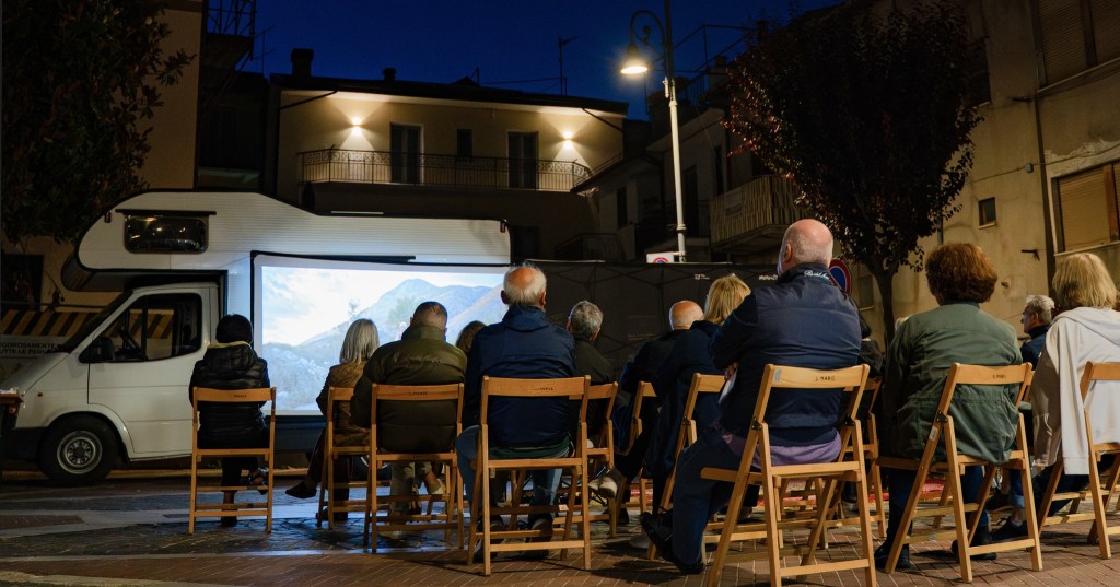 “Da un mese viviamo nel CineCamper e attraversiamo la Marsica – raccontano Francesca e Giuliana – portando il cinema nei piccoli paesi dell’Appennino. Lo facciamo con passione, e anche con fatica, ma ogni sera, ogni proiezione, ogni chiacchierata ci restituisce qualcosa di più grande: la partecipazione calorosa del pubblico, l’emozione dei racconti condivisi, il bisogno palpabile di comunità“.