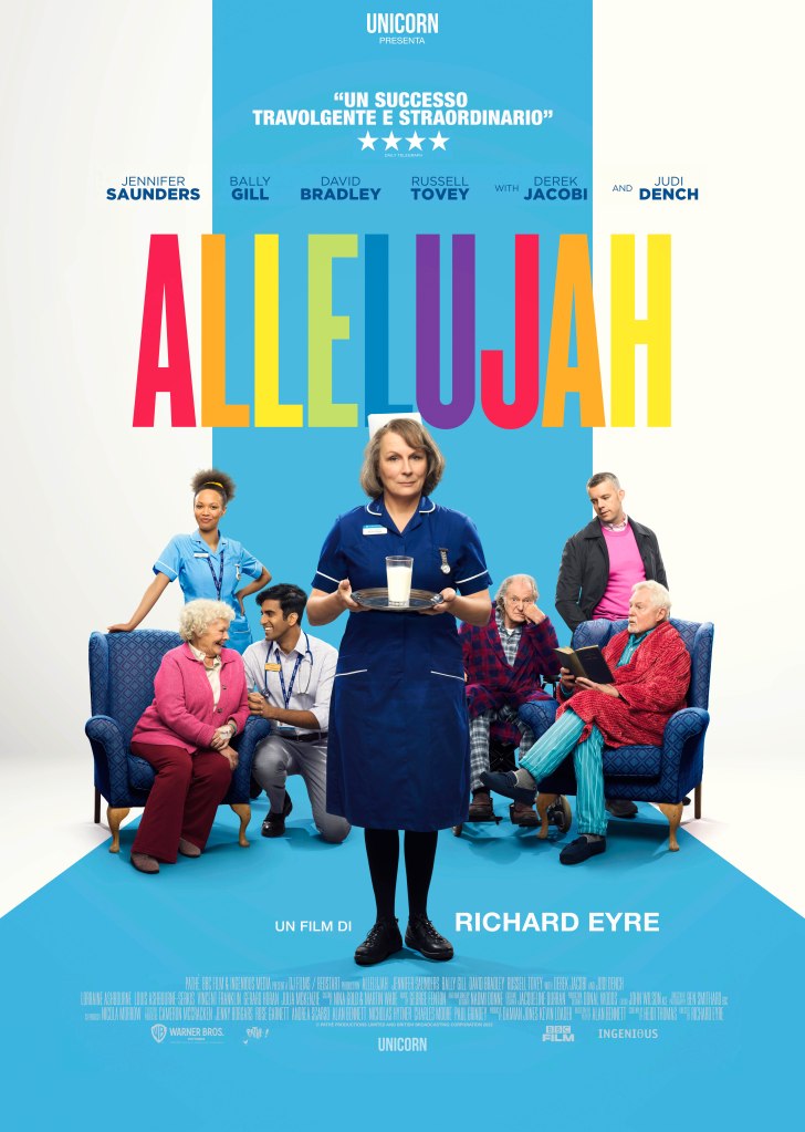 Andando ora a scrivere di Allelujah, neanche questo titolo mi ha convinto in pieno, in quanto, almeno a mio parere, non sempre, sia a livello di scrittura che di regia, riesce a coniugare con equilibrio commedia e dramma. Ho trovato soprattutto gradevole e coinvolgente la prima parte del film, quando il Dr. Valentine (Bally Gill), di origini indiane (ha mutato il suo nome per rendere facile la pronuncia ai degenti), ci introduce nel Bethlehem, immaginaria struttura ospedaliera sita nella città inglese di Wakefield, nello Yorkshire, che può vantare un reparto geriatrico d’eccellenza, a rischio chiusura causa un previsto taglio dei fondi imposto dal Ministero.