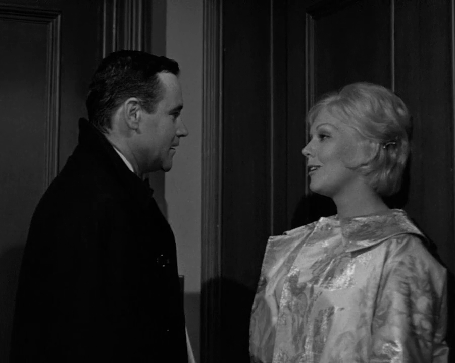 Quella che potremmo definire la prima parte del film può considerarsi una sorta di prologo preparatorio ai successivi coup de théâtre, quando entreranno gradualmente in scena i personaggi principali e le loro caratteristiche psicologiche e comportamentali: l’apparentemente sprovveduto William, reso abilmente da Lemmon nella sua accecante “fregola sentimentale”, che fa precipitare rovinosamente ogni istanza di impettito perbenismo; l’ingenua, pro domo sua, Carlye, cui la splendida Novak offre tutta l’ammaliante ambiguità dello sguardo che le è proprio; il fare elegante e serpentino delineato, anche nella mimica corporale, da un brillante Fred Astaire; ultimo ma non per ultimo, come si suole dire, l’annaspare nel buio visualizzato da Jeffries nell’impersonare l’ispettore di Scotland Yard, sorta di prototipo, vagamente più acuto, dell’ispettore Clouseau.