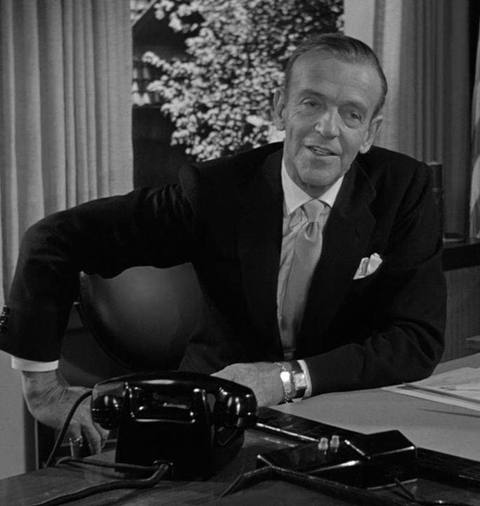 Quella che potremmo definire la prima parte del film può considerarsi una sorta di prologo preparatorio ai successivi coup de théâtre, quando entreranno gradualmente in scena i personaggi principali e le loro caratteristiche psicologiche e comportamentali: l’apparentemente sprovveduto William, reso abilmente da Lemmon nella sua accecante “fregola sentimentale”, che fa precipitare rovinosamente ogni istanza di impettito perbenismo; l’ingenua, pro domo sua, Carlye, cui la splendida Novak offre tutta l’ammaliante ambiguità dello sguardo che le è proprio; il fare elegante e serpentino delineato, anche nella mimica corporale, da un brillante Fred Astaire; ultimo ma non per ultimo, come si suole dire, l’annaspare nel buio visualizzato da Jeffries nell’impersonare l’ispettore di Scotland Yard, sorta di prototipo, vagamente più acuto, dell’ispettore Clouseau.