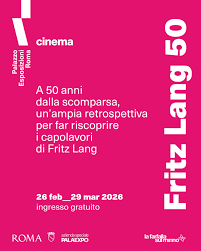 Fritz Lang 50- 26.02__29.03.2026. Rassegna cinematografica a cura di Palazzo Esposizioni Roma e La Farfalla sul Mirino. Promossa da Assessorato alla Cultura di Roma Capitale e Azienda Speciale Palaexpo. In collaborazione con Goethe-Institut Rom, Forum Austriaco di Cultura Roma